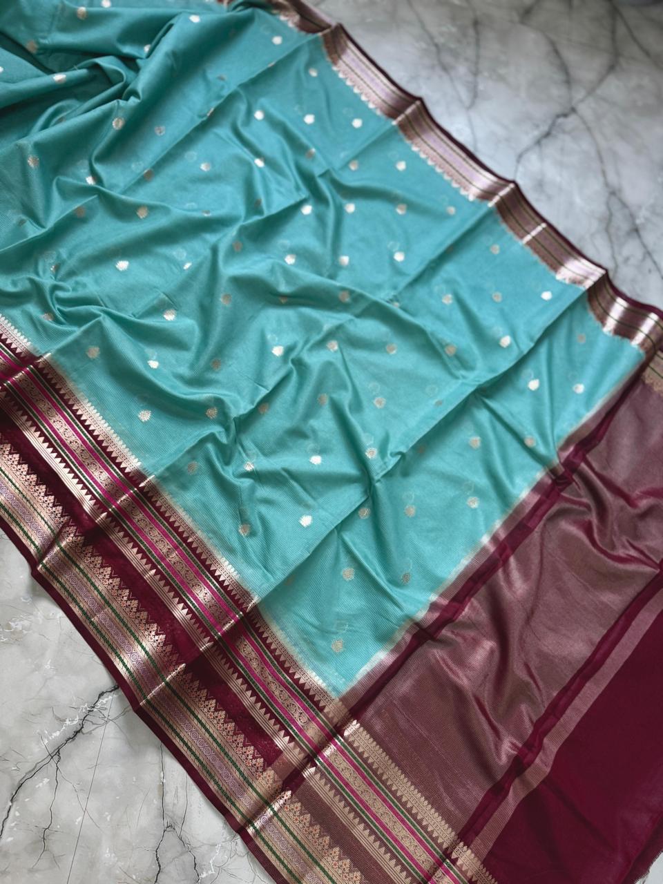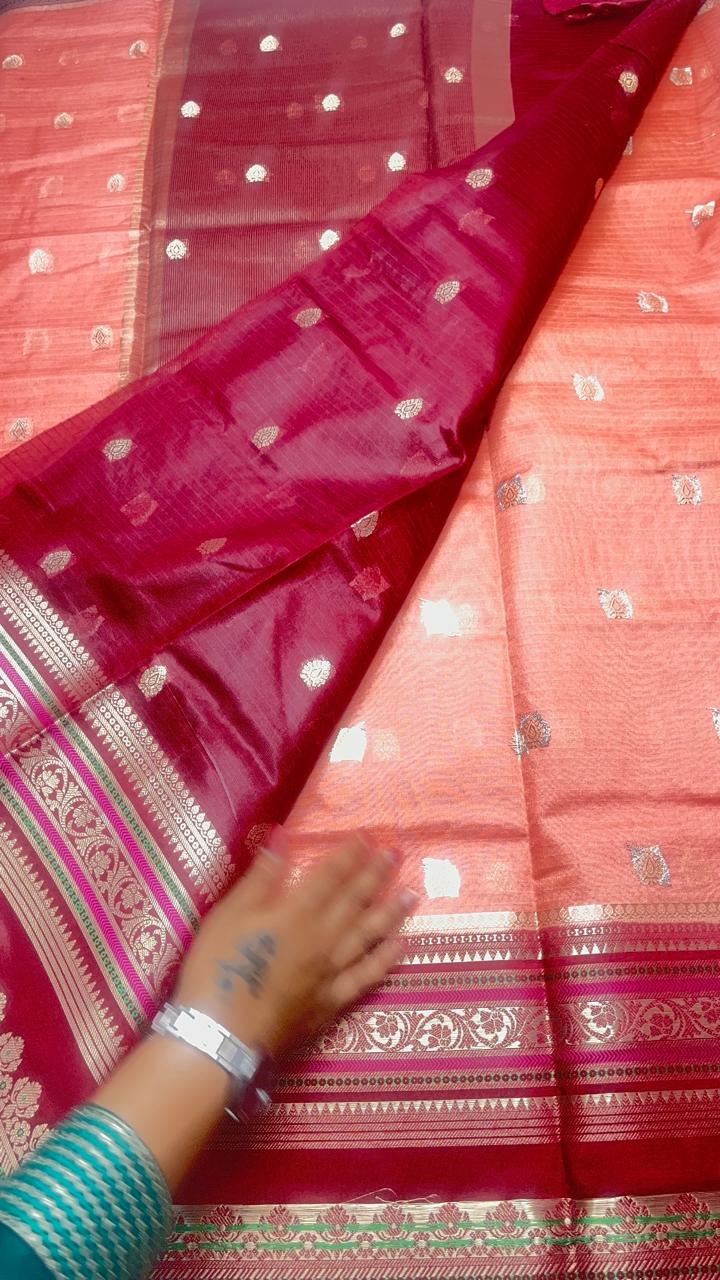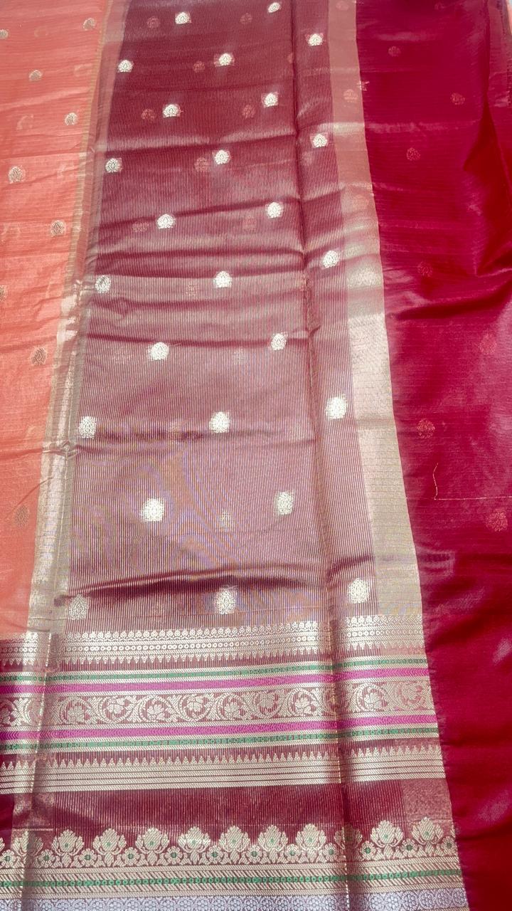 Banarasi Dupion Silk Saree with butti weaving and contrast blouse