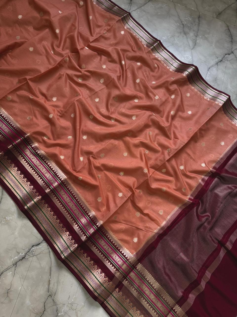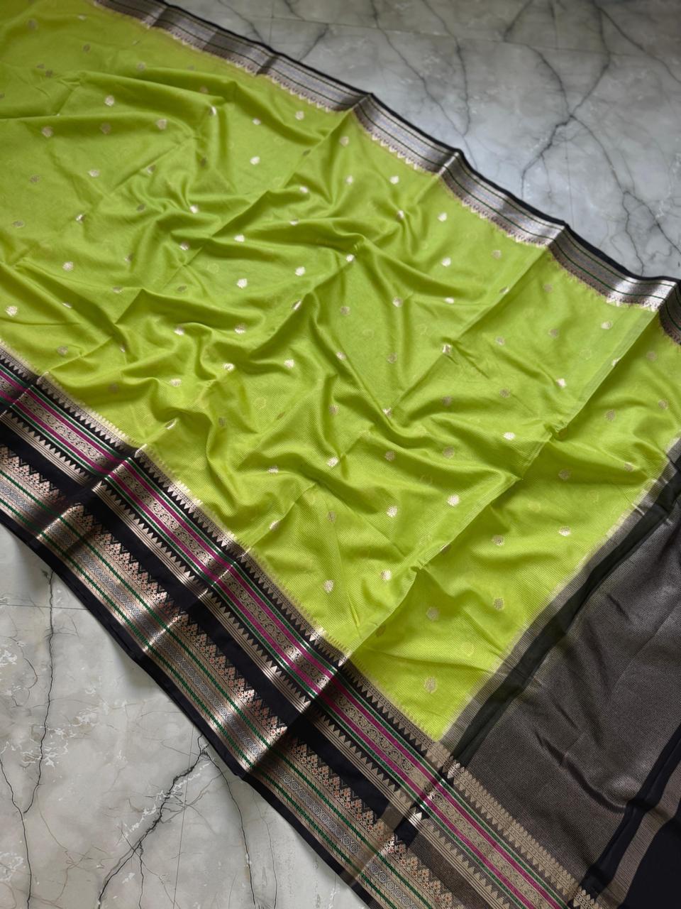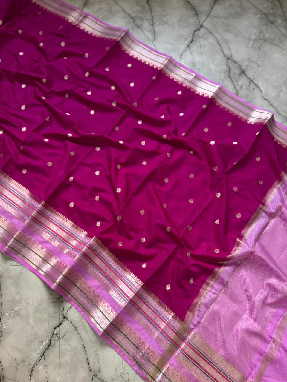 Banarasi Dupion Silk Saree with butti weaving and contrast blouse