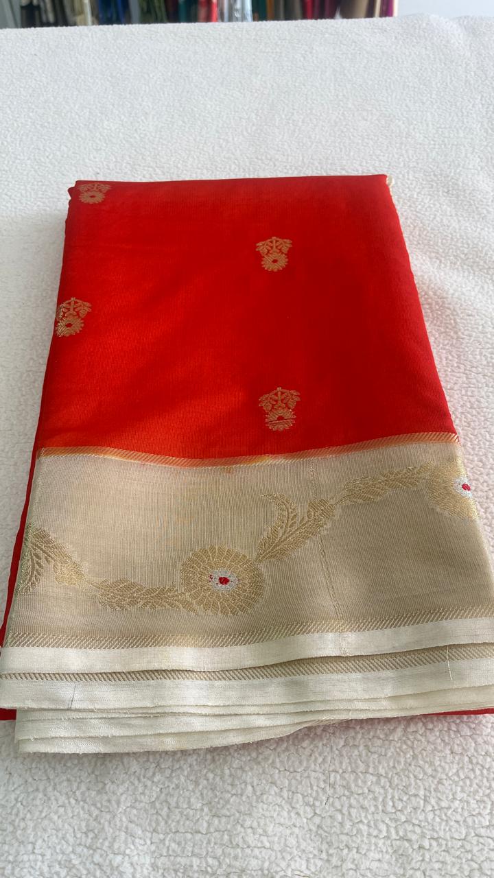 Banarasi Dupion Silk Saree – Orange cream-ASAR070166- 30% OFF
