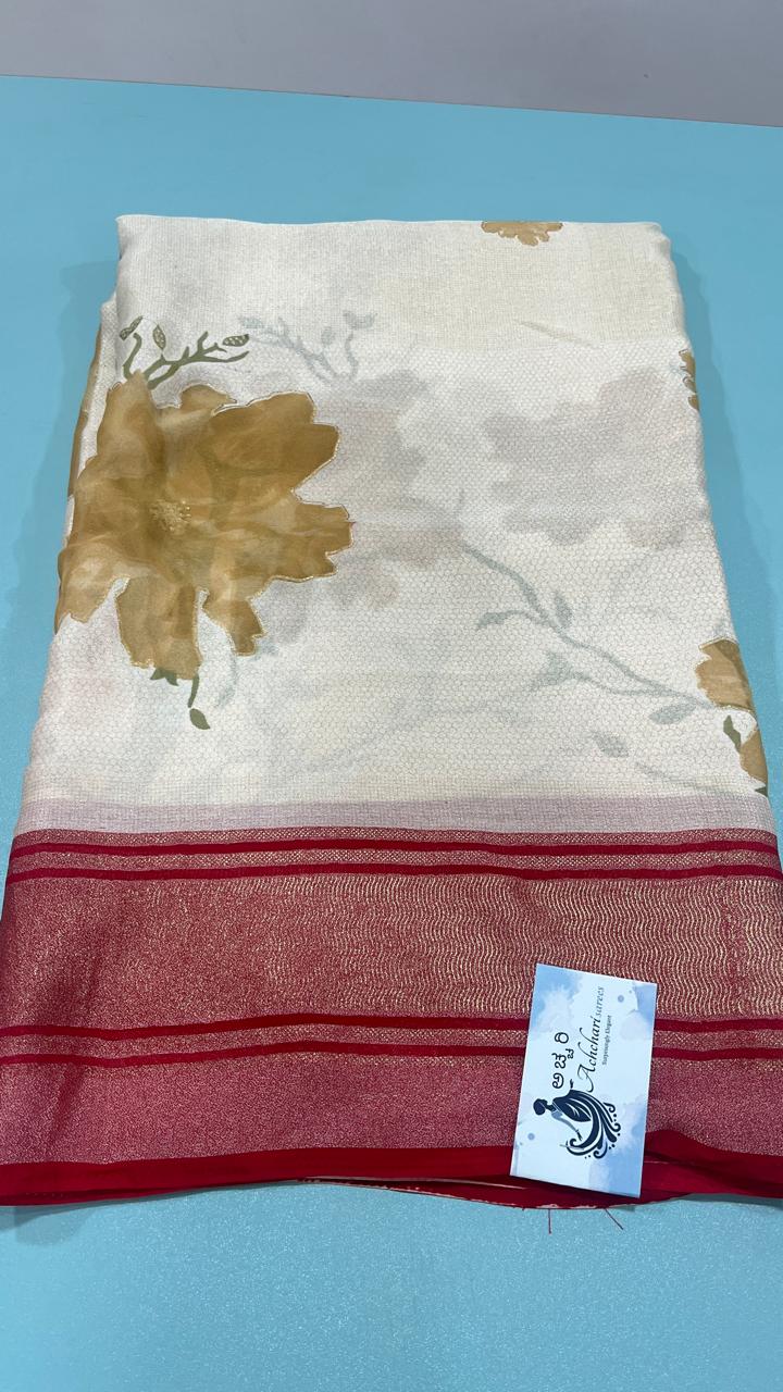 Designer chiffon saree with applique work