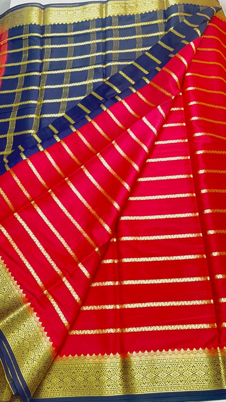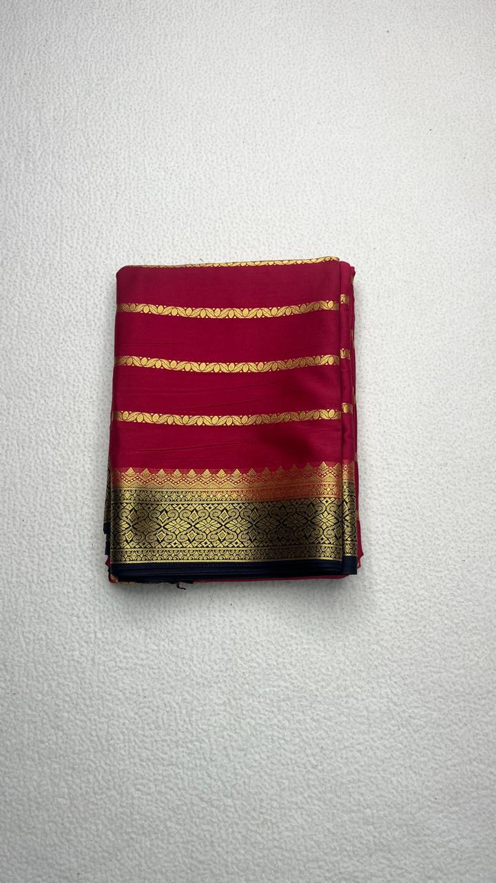 Semi Mysore Silk Saree with and rich border and pallu and strips all over the saree