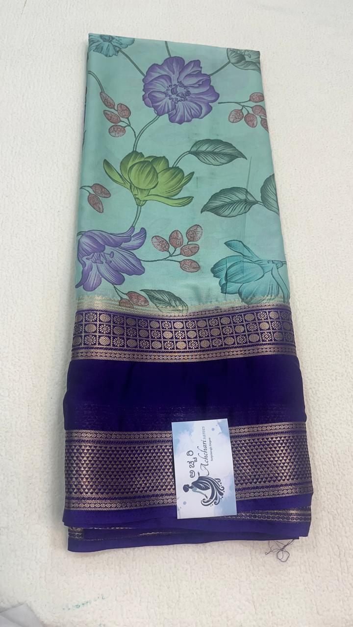 Semi Mysore Silk saree with Floral Digital Print with gap border