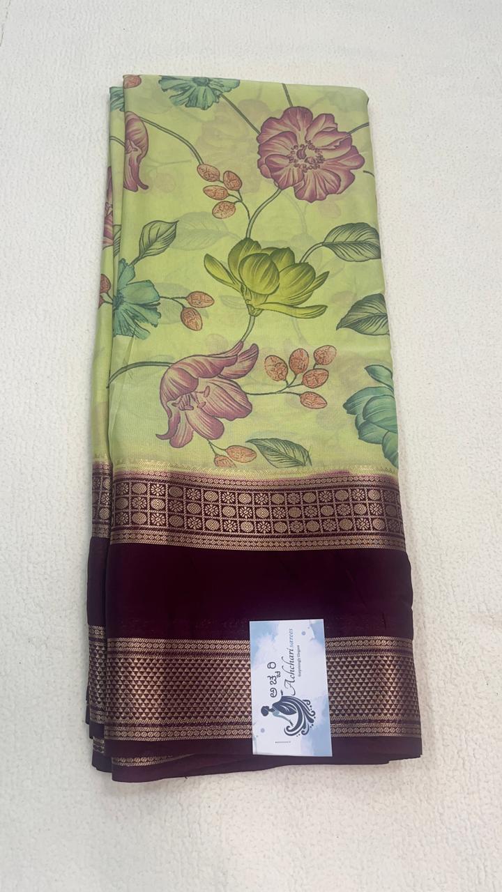Semi Mysore Silk saree with Floral Digital Print with gap border