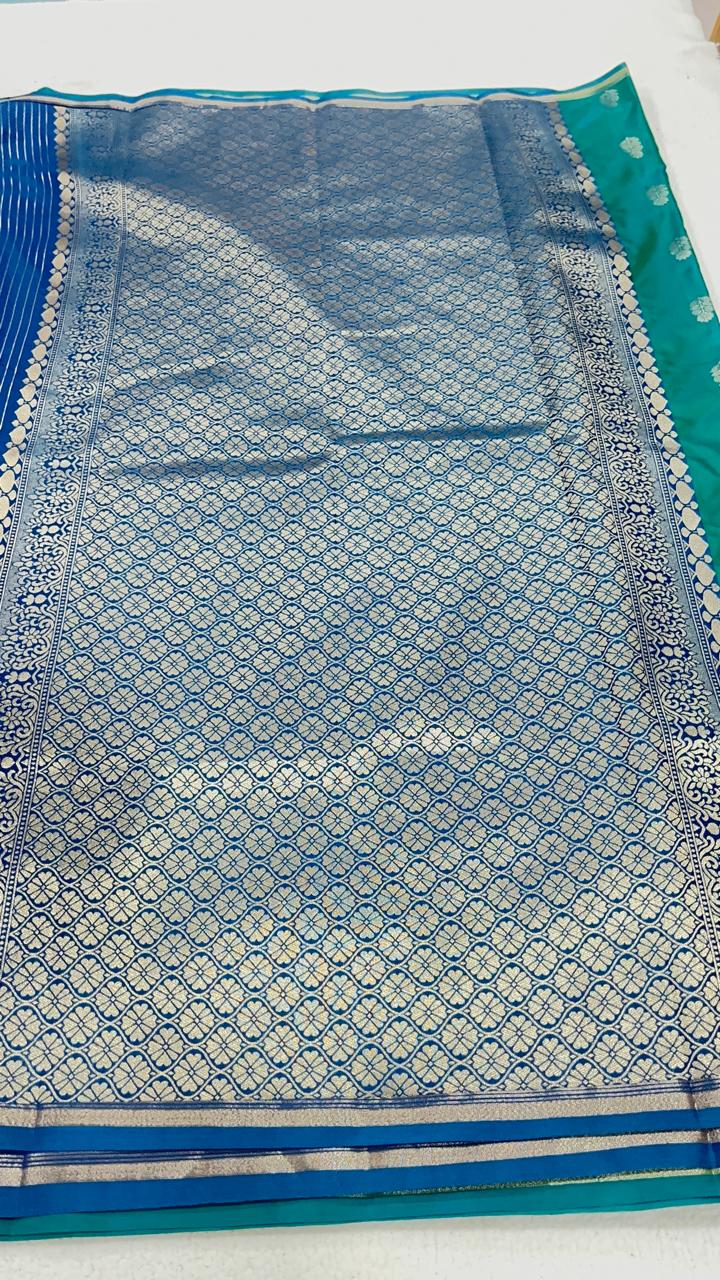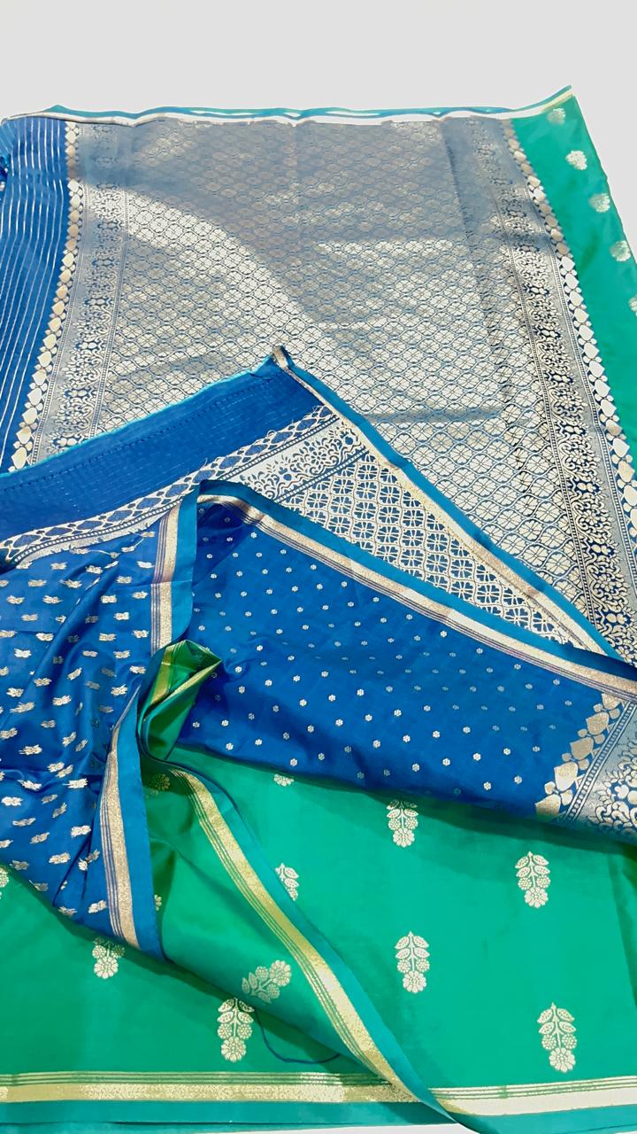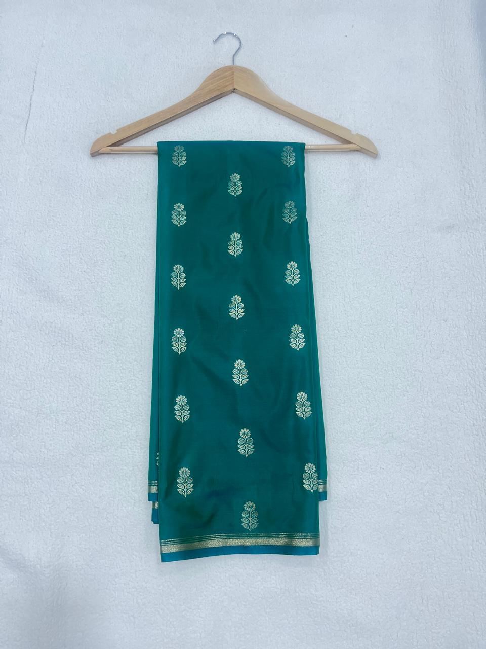 Soft Silk with Butta design – Teal Green with Blue- ASSM040107-40% OFF