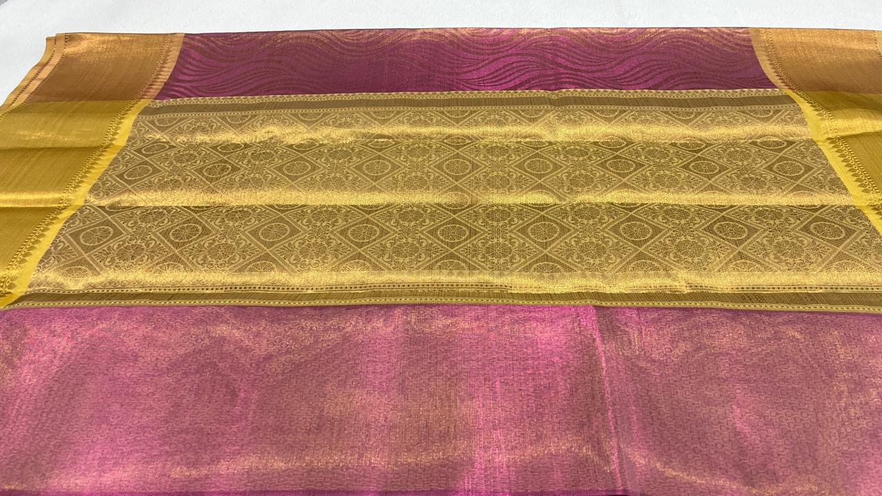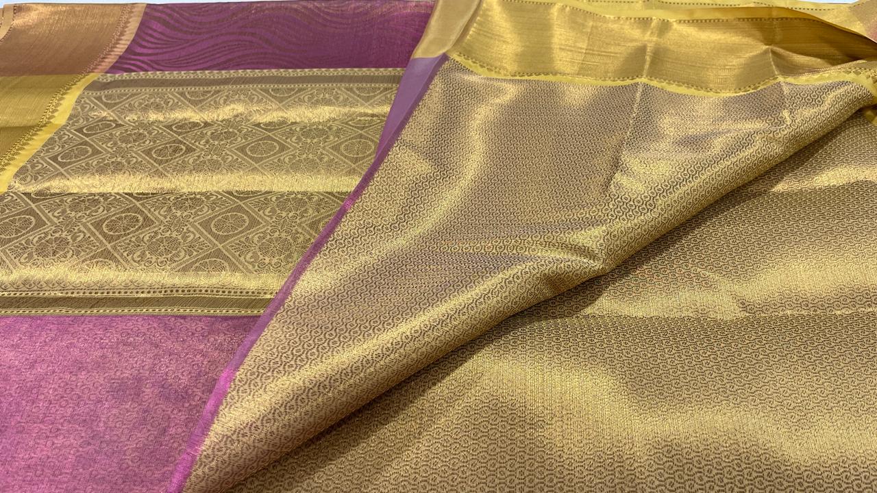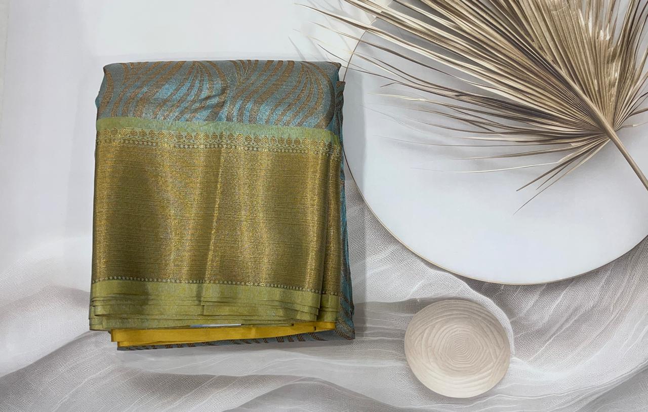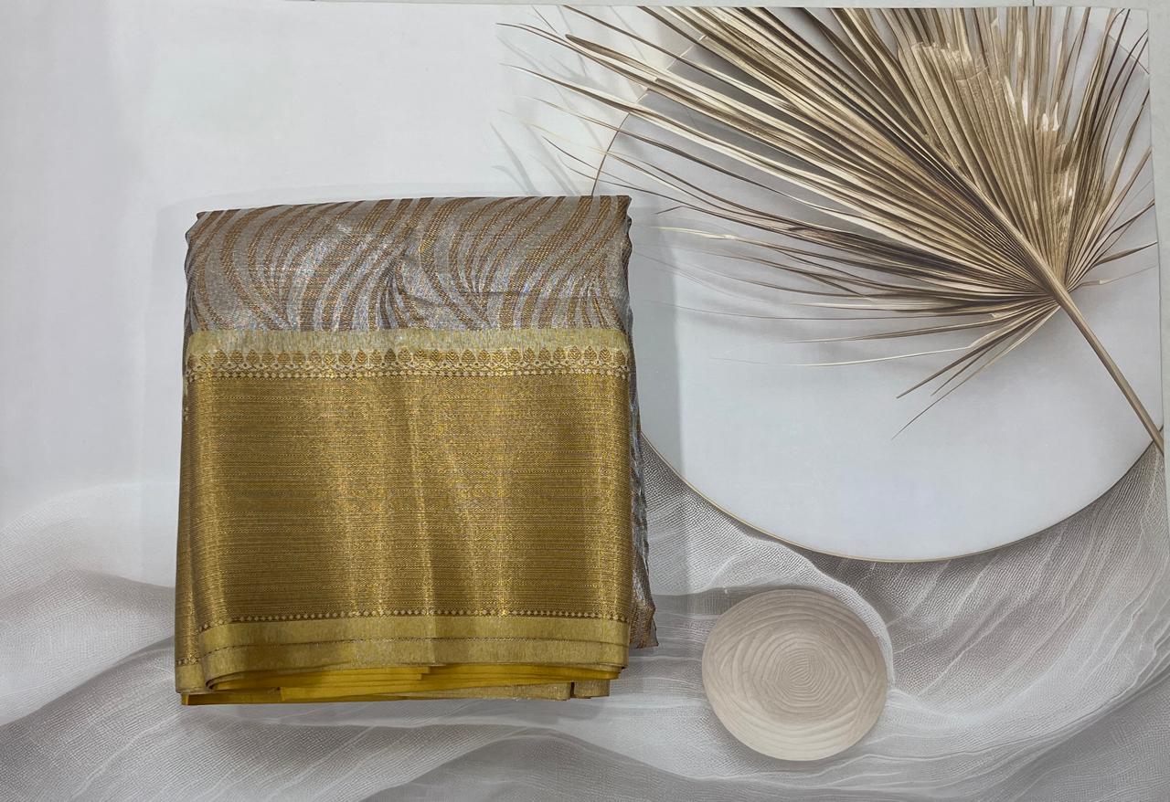 Tissue silk saree with Shimmery all over with Gold border