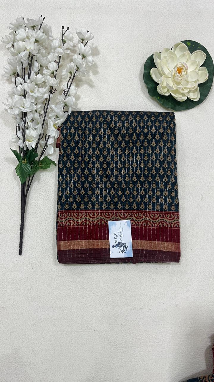 Wrinkle Crepe printed Silk saree , print all over the saree and pallu